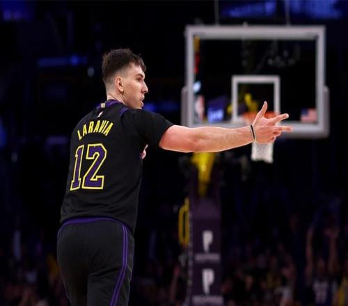 拉拉維亞在下半場(chǎng)只得到了3分,不過(guò)他的得分非常關(guān)鍵。全場(chǎng)還剩2分26秒,湖人116比112領(lǐng)先灰熊。東契奇在24秒進(jìn)攻時(shí)間所剩無(wú)幾的時(shí)候?qū)⑶騻鹘o拉拉維亞,后者快速出手命中三分球。這一球幫助湖人領(lǐng)先7分。