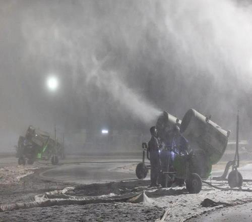 戶外雪場全靠造雪機(jī)。(圖/視覺中國)