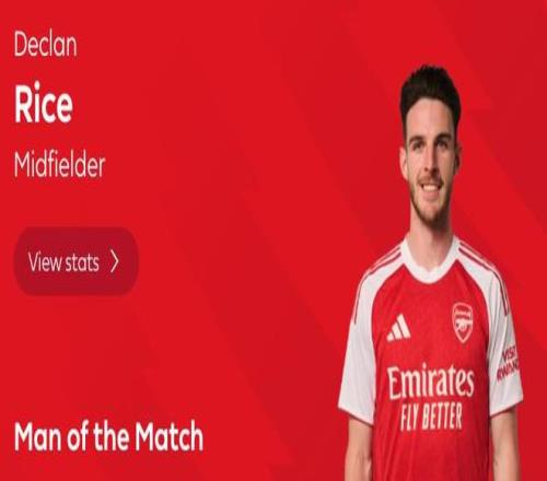 最終經(jīng)過英超官網(wǎng)球迷投票,賴斯以71%的得票率當(dāng)選全場最佳球員。