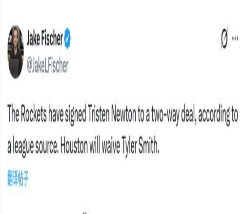 北京時間1月4日,據(jù)名記Fischer報道,火箭已與特里斯滕-牛頓簽下雙向合同,他們將裁掉泰勒-史密斯。隨后名記Scotto表示,牛頓本賽季至今效力于G聯(lián)賽的愛荷華狼隊效力,場均得到26.8分,投籃命中率為49.4%,三分球命中率為37.6%,此外還有7.7次助攻、4.9個籃板和1.7次搶斷。