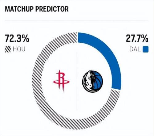 賽前,美媒ESPN對本場比賽進(jìn)行了勝率預(yù)測,火箭隊勝率依舊高達(dá)72.3%,占據(jù)絕對上風(fēng),獨行俠勝率則僅有27.7% 。