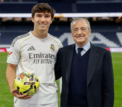 賽后,皇馬主席弗洛倫蒂諾走進(jìn)伯納烏球場(chǎng),向貢薩洛-加西亞表示祝賀。