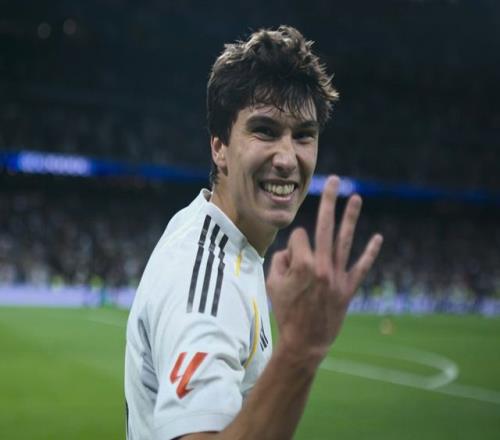 左腳、右腳、頭球,貢薩洛-加西亞的得分方式毫無弱點(diǎn)。這種帽子戲法,稱之為完美帽子戲法(perfect hat trick)。戴帽6分鐘之后,貢薩洛-加西亞被換下,伯納烏球場(chǎng)的7萬皇馬球迷,紛紛起立鼓掌,向貢薩洛-加西亞致敬。