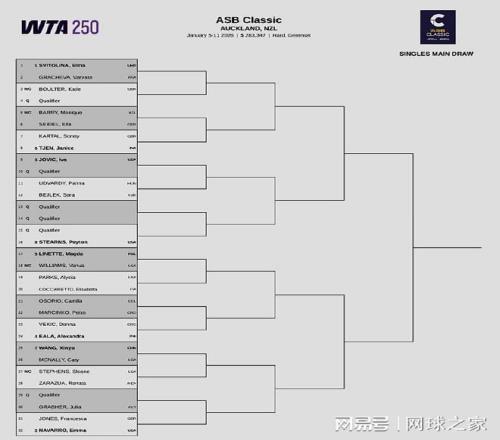 WTA250奧克蘭站:烏克蘭小白菜斯維托麗娜和美國(guó)人納瓦羅領(lǐng)銜出戰(zhàn);中國(guó)二姐王欣瑜被抽到了下半?yún)^(qū),首輪對(duì)陣美國(guó)人麥克納莉;大威廉姆斯也確認(rèn)參賽,首秀的對(duì)手是波蘭人里內(nèi)特。另外,在奧克蘭站女單資格賽首輪較量中,中國(guó)小將郭涵煜以4-6 0-6吞蛋不敵赫瓦林斯卡,無(wú)緣晉級(jí)。