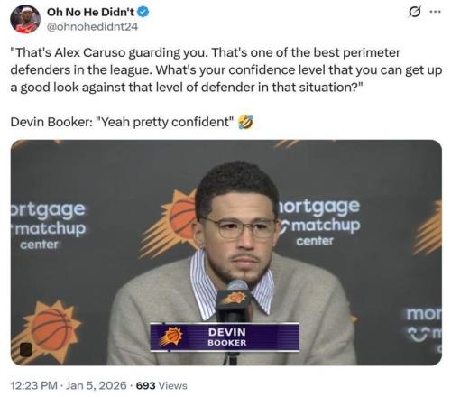 賽后被問(wèn)到迎著卡魯索這名頂級(jí)防守人出手三分是否有信心時(shí),布克霸氣回應(yīng)道:“我相當(dāng)有信心!”