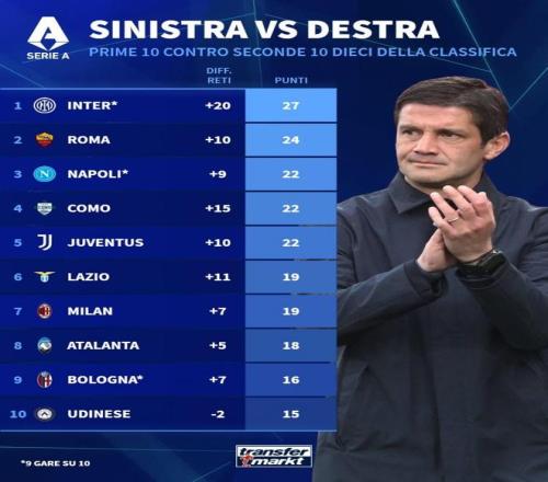 而凈勝球數(shù)據(jù)也值得一提,國米以20粒凈勝球遙遙領先,除了科莫的15球比較接近外,其他球隊都只有國米的1/2、1/3甚至1/4。國米9場比賽就拿到20粒凈勝球,場均凈勝對手2.2球,證明藍黑軍團面對弱旅基本都能輕松取勝,印象里除了客戰(zhàn)維羅納是依靠對手壓哨烏龍取勝之外,其他比賽中國米并沒有遇到太大阻力。而那不勒斯、尤文、米蘭等球隊在對陣弱旅時不只是丟球丟分贏球困難,而且就算贏球也以小勝居多!