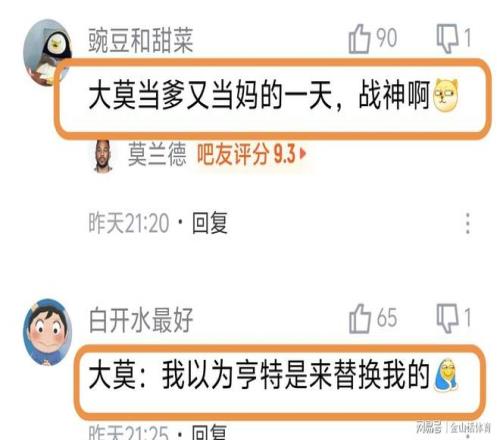 賽后,許多遼寧球迷對大莫的表現(xiàn)大加贊賞。“大莫當(dāng)?shù)之?dāng)媽的一天,戰(zhàn)神啊”;“大莫:我以為亨特是來替換我的?!保弧笆值劬褪沁|籃的晴雨表,威爾斯真大腿,莫蘭德爆棚,王嵐嵚越打越自信,這場可以了?!?;“去年把莫藍德拿下,我遼今年絕對不會散架成這樣”……