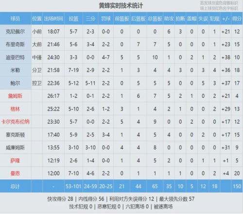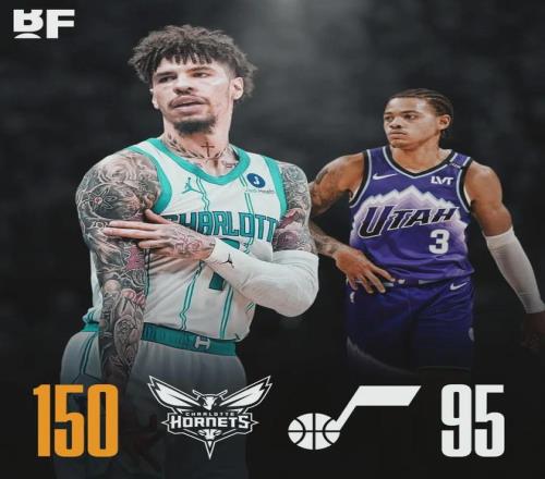 單場150分是黃蜂隊(duì)史第二高分,隊(duì)史最高分是158分。單場凈勝55分,是黃蜂隊(duì)史最大贏球分差。黃蜂9人得分上雙,只有1人得分上20。特雷-曼恩替補(bǔ)出戰(zhàn)12分鐘,12投7中砍下20分,全隊(duì)最高。三球重回首發(fā)陣容,12中5得到17+5+5!