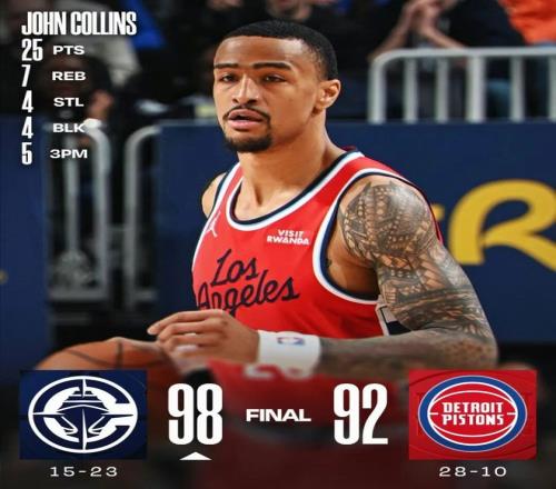快船客場98-92艱難逆轉(zhuǎn)底特律活塞,本賽季完成對這支東部榜首球隊的“雙殺”。本場扎克·科林斯14投9中,三分球8中5,砍下25分、7個籃板,更恐怖的是送出了4次搶斷和4記封蓋,正負值高達+19冠絕全場。一份25+7+4+4的華麗數(shù)據(jù)單,讓他成為快船隊史繼“船長”埃爾頓·布蘭德之后,第二位達成此成就的球員。