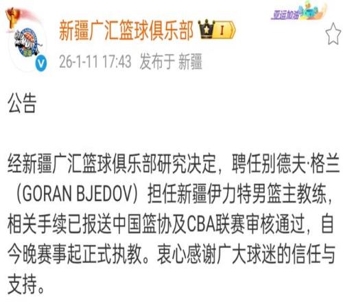 新疆男籃正式官宣!國(guó)家隊(duì)教練走馬上任,成為主帥,全力沖擊前八