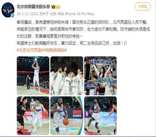 反觀北京官微發(fā)文總結(jié)還是以打氣為主:“客場鏖戰(zhàn),雖有遺憾但拼勁未減!面對勢頭正盛的深圳,北京在人員不整、體能承壓的情況下,始終緊跟快節(jié)奏攻防,全力追分不曾松懈。防守端的失誤是成長的注腳,密集賽程更是對韌性的考驗。希望將士們能調(diào)整好狀態(tài),蓄力回血,周二主場迎戰(zhàn)江蘇,加油!”
