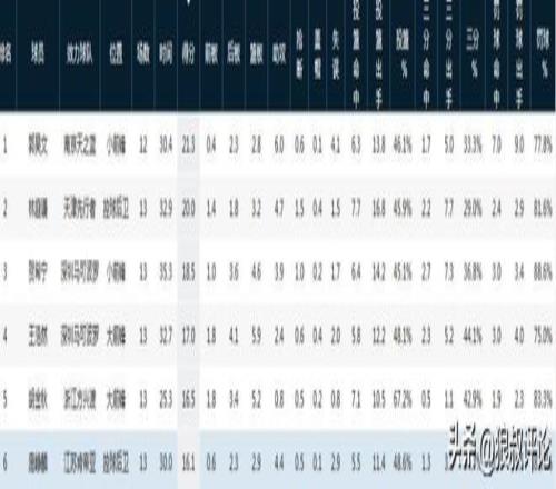 南區(qū)后場(chǎng)排名前四的球員為: