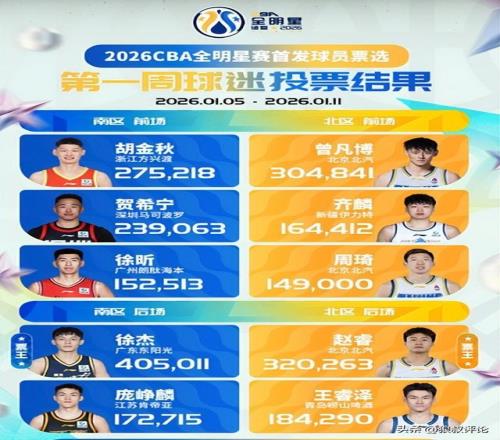 北京時(shí)間1月12日,根據(jù)CBA官方的公示,全明星賽首發(fā)球員票選第一周票數(shù)當(dāng)中,南區(qū)的后場(chǎng)投票引發(fā)球迷的關(guān)注。