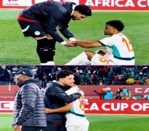 埃及淘汰科特迪瓦后,馬爾穆什最先找到阿馬德并送上安慰