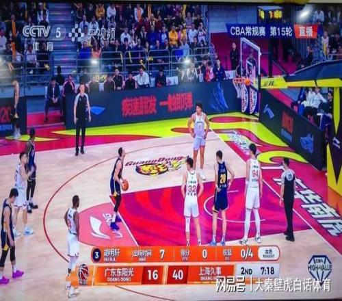 王哲林兩罰全中,幫助上海隊以29-6領(lǐng)先;薩姆納連得5分終于幫助廣東得分上雙。
