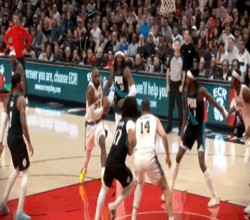 第四節(jié)節(jié)中,老詹在試圖封蓋克林根時(shí)