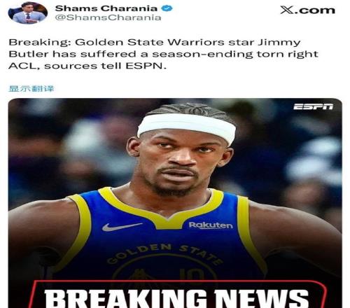 之后,據(jù)ESPN名記Shams報道,多位消息人士透露,勇士球星吉米·巴特勒遭遇前十字韌帶撕裂,賽季報銷!