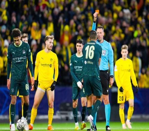 顏面盡失的曼城,在第60分鐘靠著謝爾基大禁區(qū)外的一腳貼地斬,打進了挽回顏面的一球,將比分追至1-2,就在曼城球迷看到一絲觸底反彈的曙光時,金球先生羅德里1分鐘之內(nèi)連吃兩張黃牌被罰下,讓藍(lán)月軍團徹底失去了追平比分的希望。