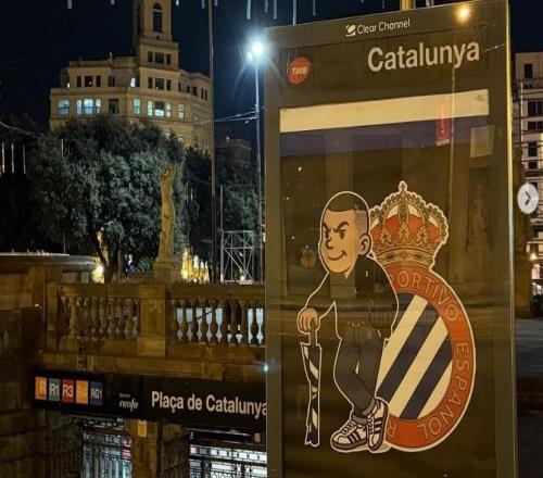 攻占巴塞羅那西班牙人球迷在全城公交車站張貼近200張海報 -